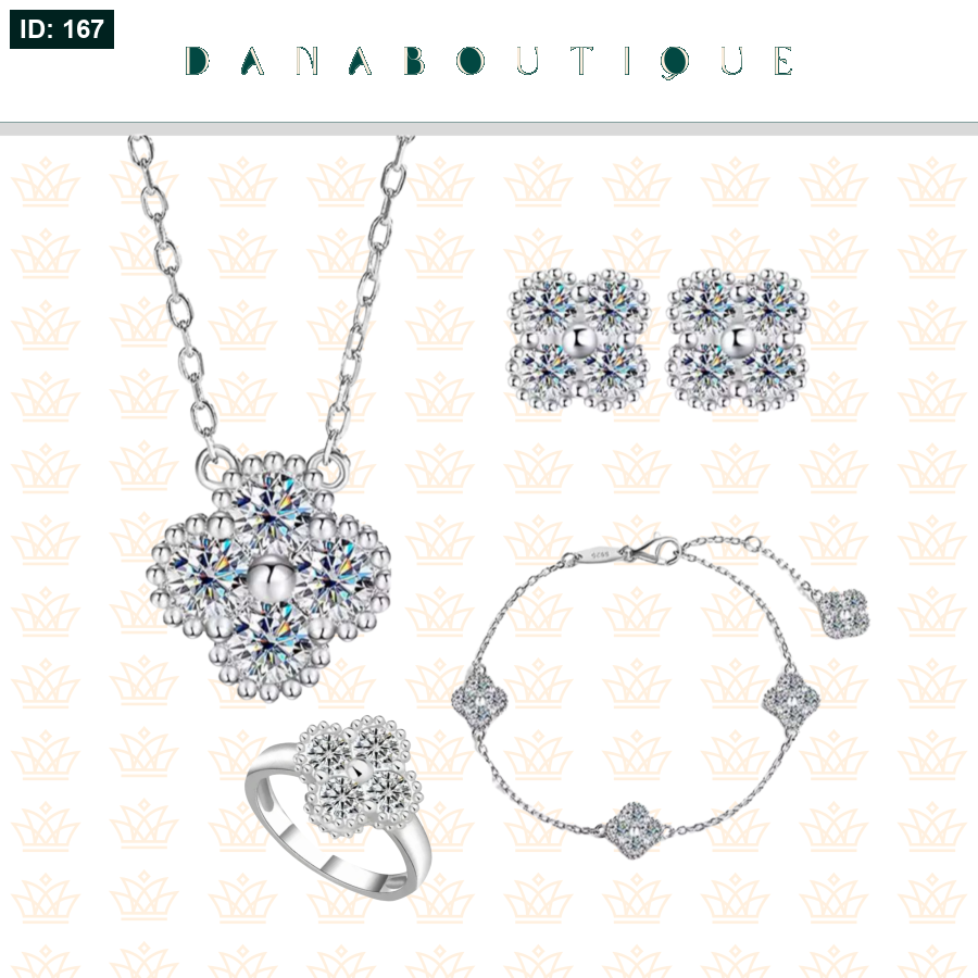 طقم ألماس فخم من Dana Boutique بتصميم مستوحى من زهرة متفتحة، ينبض بالأناقة والرقي.